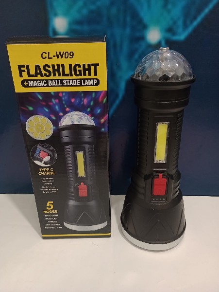 Novedosa Linterna Led COB Multifuncion. Tiene las maximas prestaciones que puede brindar una linterna. Alta potencia. Con distintos modos de luz en la parte frontal, Luz potente en la parte lateral y Proyeccion de luz de colores.