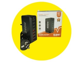 El cargador USB GaN+ de 240W y 8 puertos (5 USB-C y 3 USB-A) presenta las siguientes características principales: