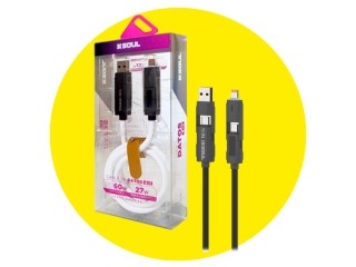 El CABLE USB 4 EN 1 60W PD C/DISPLAY SOUL BLANCO/NEGRO es un cable versátil diseñado para cargar y sincronizar múltiples dispositivos a la vez, ofreciendo carga rápida Power Delivery (PD) de hasta 60W y un práctico display que muestra la potencia de carga en tiempo real.